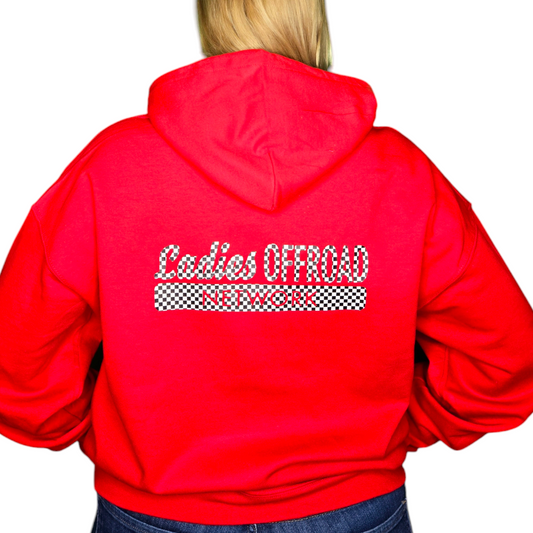 Ladies Offroad Network Checker Flag Red Hoodie