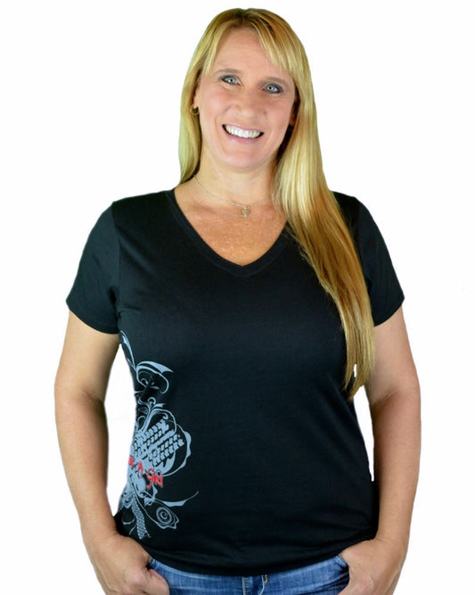 I'm Not Just a Girl Tire Tread Black Vneck Shirt