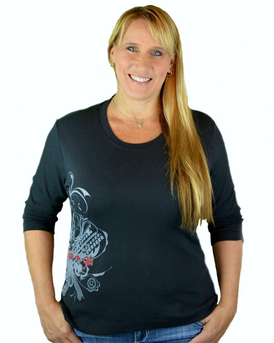 I'm Not Just a Girl Tire Tread 3/4 Sleeve Black Tshirt